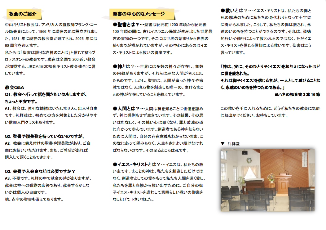 各集会の詳細についてはこちら ⇒ [礼拝・集会案内]