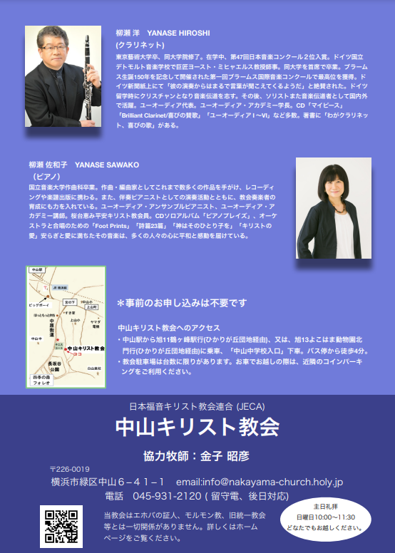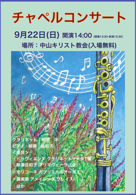 未分類2024, キリスト教, クラリネット, チャペルコンサート, ピアノ, 中山教会