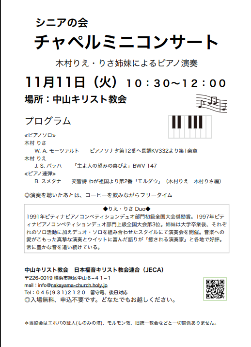 集会・イベント案内2025, キリスト教, シニアの会, チャペルミニコンサート